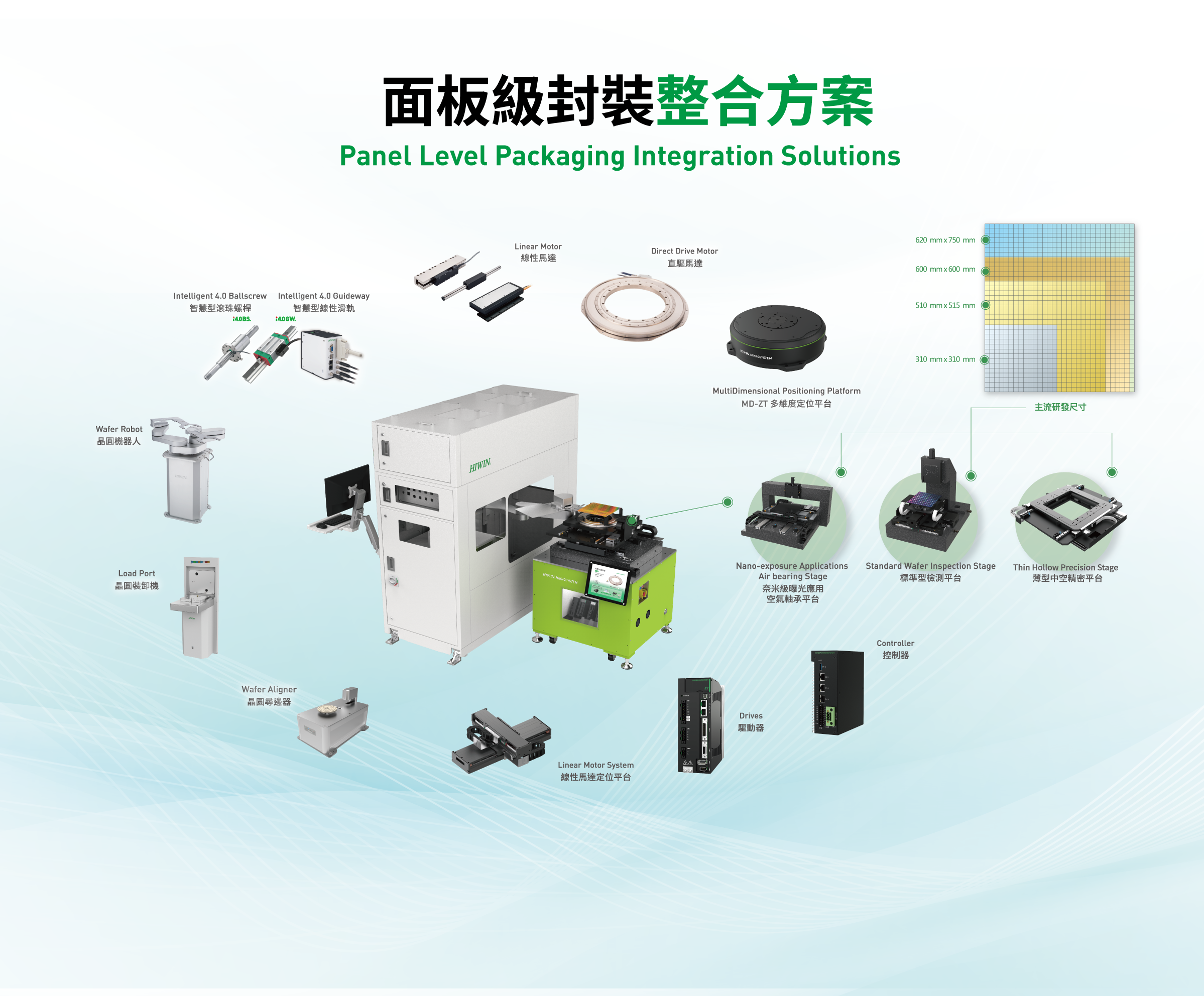 2026/04/08 資料來源:經濟日報 文/魯修斌 隨著科技快速演進,AI與高效運算需求持續攀升,帶動新一代電子製造設備與半導體先進製程的技術革新,相關製程技術正深刻影響整體電子產業鏈的發展方向。同時,面板級封裝等新型應用場景的拓展,也為產業注入嶄新成長動能。 HIWIN Group -上銀科技與大銀微系統,將於4月8日登場的台北電子生產製造設備展中,展示多項關鍵技術成果。大銀微系統推出新型奈米級定位平台,整合多維度模組與驅控一體化控制系統,以因應前端市場的高階應用需求;並結合上銀科技PLP自動化次系統,為客戶提供完整且高效的整合解決方案。 【由圓轉方 • 為PLP 310 Χ 310mm高效封裝而生】 面板級封裝產能提升,產品良率的控管成為關鍵。大銀微系統最新奈米級定位平台(Nano-scale Positioning Stage),應用於高階光學檢測設備,具備高效對準與快速取像能力,提升30%以上的檢測效率。因應面板尺寸持續放大,HIWIN Group透過關鍵零組件整合優勢,結合AI智慧調校技術,確保重現精度小於±0.1 μm,有效解決大尺寸應用所衍生的累積誤差問題。 【原地升級 • 對準每一個關鍵 • 輕鬆解決表面翹曲4 mm對焦問題】 在晶片製造持續追求高效能與微型化的趨勢下,製程複雜度大幅提升,對檢測精度的要求亦隨之提高。針對產品翹曲造成的對焦困難,大銀微系統推出MD-ZT多維度定位平台,具備4個自由度的定位功能,可在檢測過程即時補正不同工件的姿態變化,有效解決對焦問題,可讓晶圓量/檢測、雷射切割等製程良率最高可提升達90%。 【驅控一體 • 掌控動靜之間 • 實現高動態響應WPH提升20%】 高精密定位平台仍須搭配卓越的控制技術才能發揮整體的效能;大銀微系統同步推出整合式多軸驅控器NPC(Nano Positioning Controller),高達20 kHz伺服控制頻率,展現優異的響應頻寬與精準定位能力。小於±2 nm的伺服穩定度,在高倍率鏡頭的應用下,仍可讓影像清晰穩定,成為高階檢測與量測設備的重要核心,兼顧低速穩定與高速動態性能表現。 HIWIN Group憑藉從關鍵零組件到系統整合的技術優勢, 提供全方位解決方案,並透過與客戶的深度合作,有效縮短研發週期,加速設備迭代升級,成為電子製造設備業者值得信賴的合作夥伴。 HIWIN Group誠摯邀請各界夥伴於展期間蒞臨交流,攜手打造產業生態圈,深化合作價值,並以創新技術驅動未來發展,共同邁向永續且具前瞻性的產業新局。 TOUCH TAIWAN-卓秀瑜董事長-游凱勝執行副總。 上銀 / 提供 奈米級定位平台(Nano-scale Positioning Stage)。 上銀 / 提供 MD-ZT多維度定位平。 上銀 / 提供 整合式多軸驅控器NPC(Nano Positioning Controller)。 上銀 / 提供 面板級封裝整合方案。 上銀 / 提供